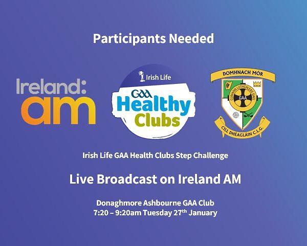 Donaghmore Ashbourne have been selected to feature on a LIVE broadcast with Ireland AM next Tuesday, 27th January, from 7:30am – 9:30am.